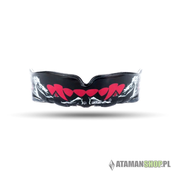 Ochraniacz na zęby w kolorze czarno-czerwonym to sprzęt stworzony z myślą o sportowcach trenujących sporty walki, w tym boks, MMA, kickboxing, muay thai czy karate. Chroni zęby, szczękę i kły, zapewniając bezpieczeństwo podczas intensywnych treningów, sparingów i zawodów.