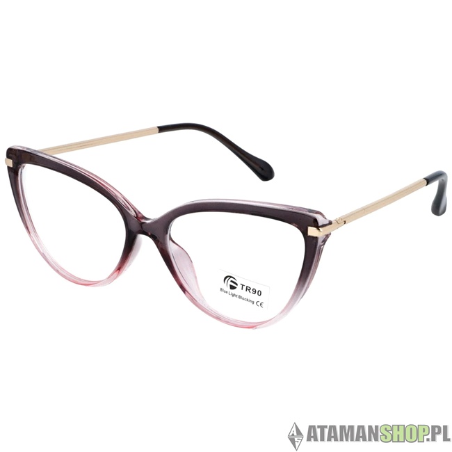 Okulary damskie zerówki Erica w modnym kształcie kocich oczu to eleganckie połączenie stylu i nowoczesnej funkcjonalności. Oprawki w odcieniach bordowo-brązowo-różowych z subtelnymi złotymi elementami nadają okularom luksusowego charakteru, podkreślając kobiecą elegancję i dodając wyrazistości każdej stylizacji.