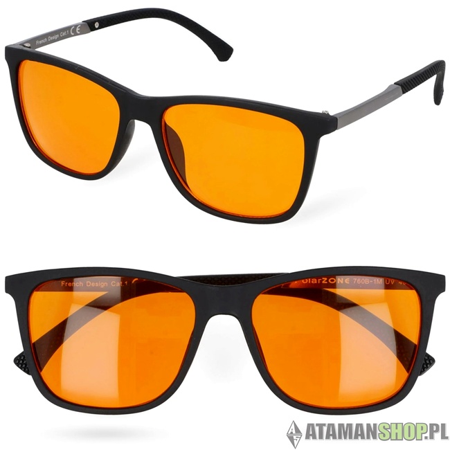 Pomarańczowe szkła z powłoką antyrefleksyjną redukują odbicia światła, poprawiają kontrast i wyrazistość obrazu. Dzięki temu okulary zapewniają większy komfort widzenia zarówno w pomieszczeniach, jak i na zewnątrz, a także zmniejszają zmęczenie oczu podczas długotrwałego użytkowania.