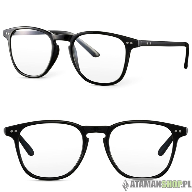 Okulary zerówki retro – czarne ramki z filtrem blue-light