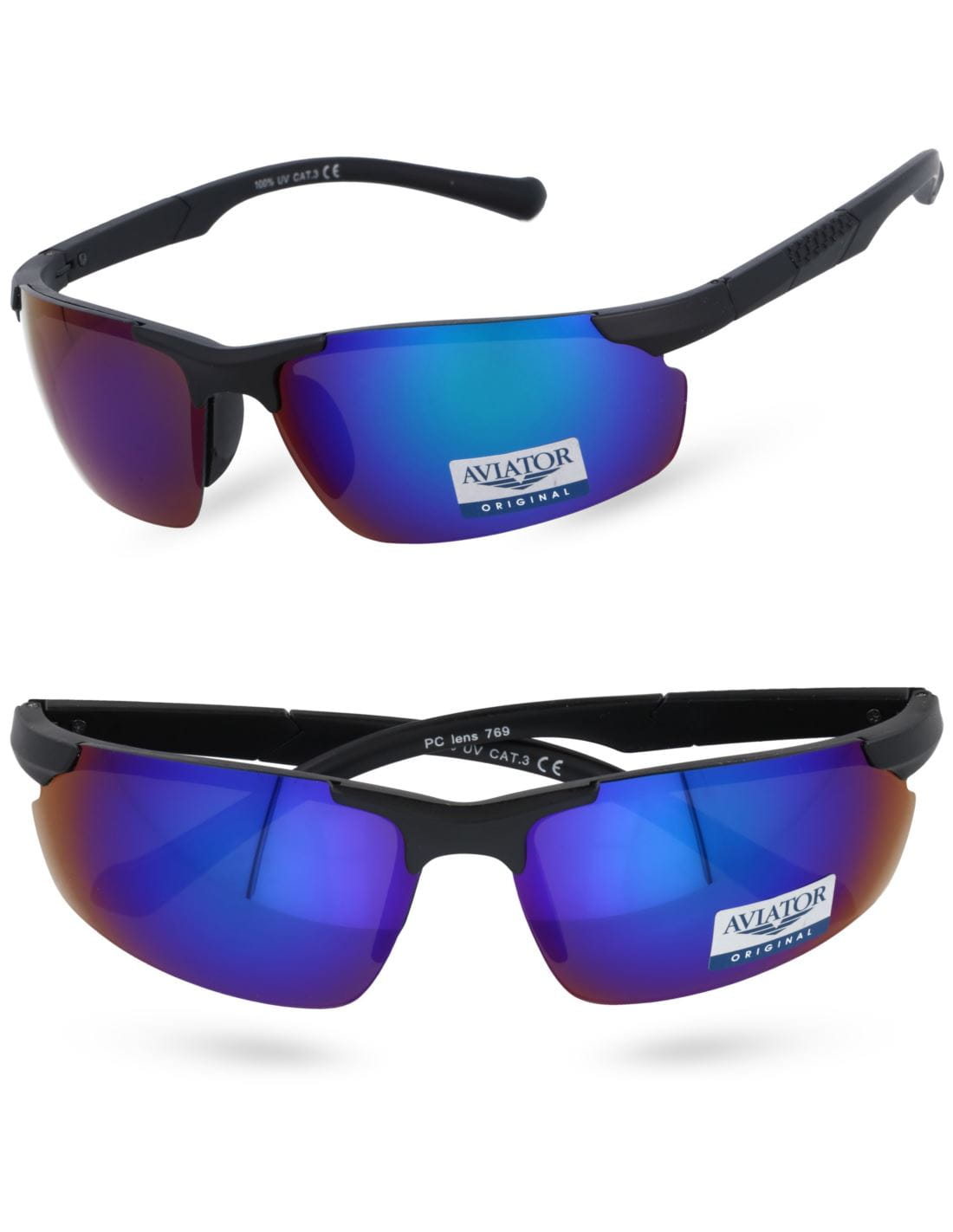 Okulary sportowe przeciwsłoneczne lustrzane granatowe