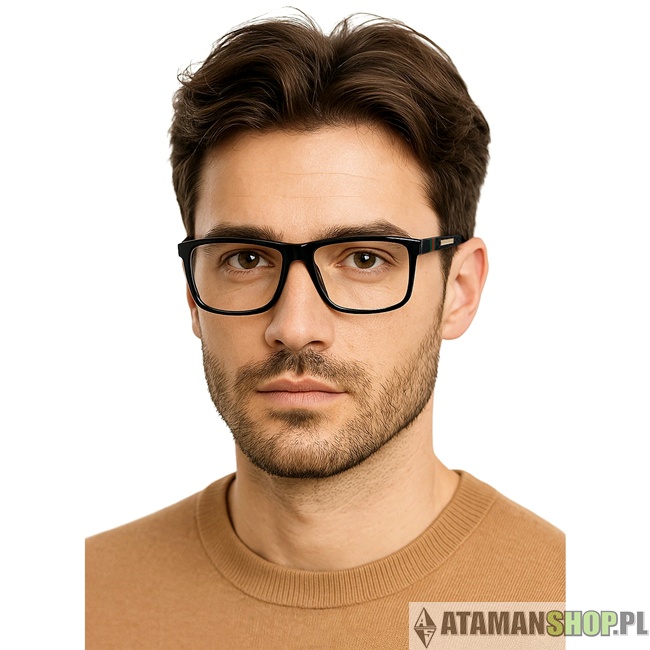 Czarna ramka z delikatnym wzorkiem nadaje okularom elegancki, a jednocześnie nowoczesny charakter. Uniwersalny design sprawia, że okulary pasują do stylu casualowego, biurowego oraz miejskiego, będąc modnym dodatkiem do każdej stylizacji.