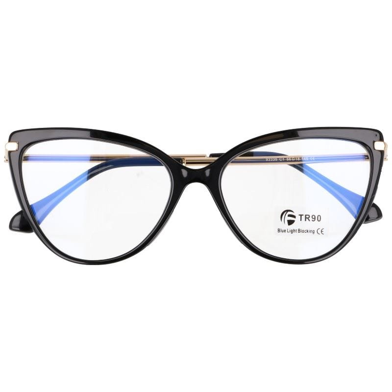 Okulary zerówki kocie oczy – czarno-złote z filtrem blue-light
