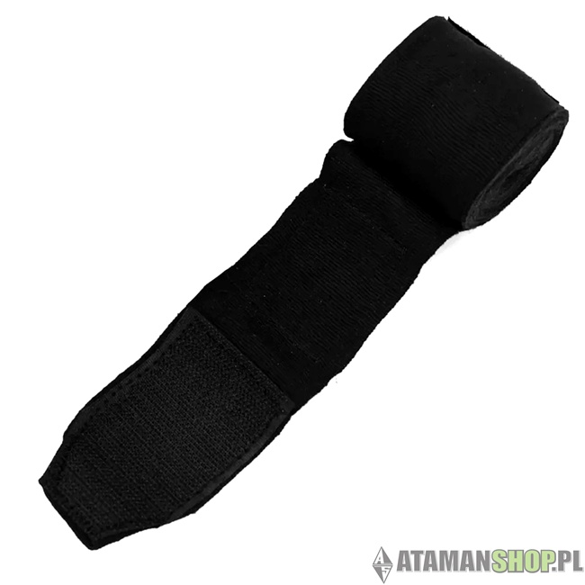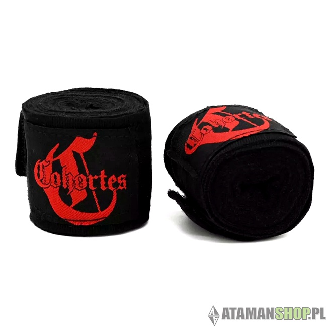 Bandaże bokserskie Cohortes 4 m czarne z czerwonym nadrukiem – półelastyczne owijki treningowe
