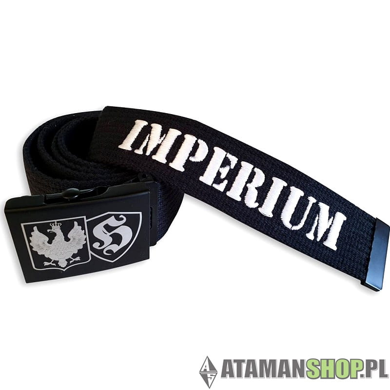 Napis Imperium wykonany haftem.