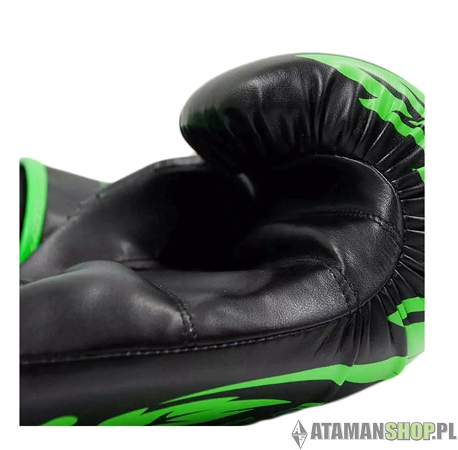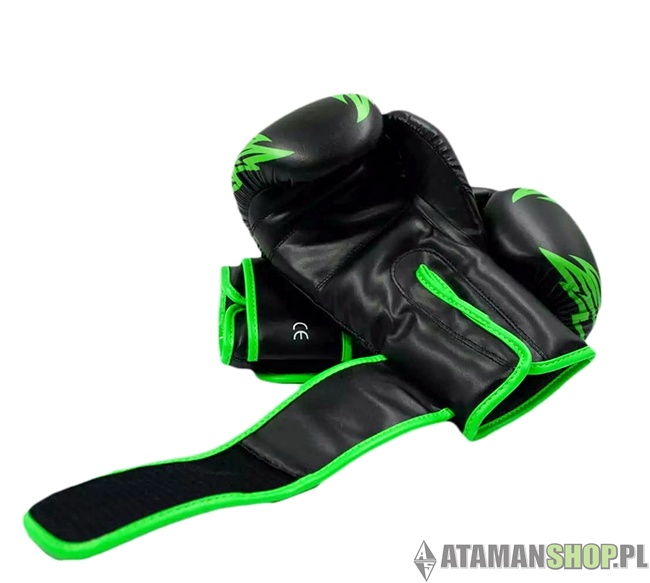 kolor: zielono czarne neon, Klasyczny model rękawicy bokserskiej wykonanej ze skóry syntetycznej.