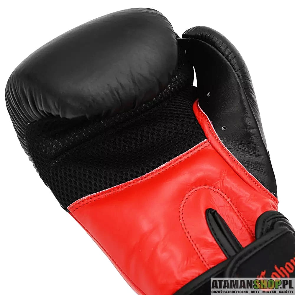 rękawice bokserskie czarno czerwone skórzane, rękawice Long Cuff, rękawice jednobryłowe boks, rękawice wentylowane siatka, rękawice kickboxing Muay Thai, rękawice treningowe premium, rękawice do sparingów, sprzęt sportów walki