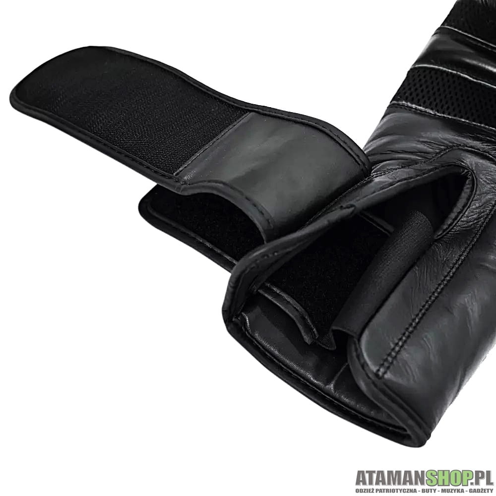 rękawice sportowe, naturalna skóra, czarne, wysoka trwałość, amortyzacja, stabilizacja nadgarstka, komfort użytkowania, sprzęt sportów walki