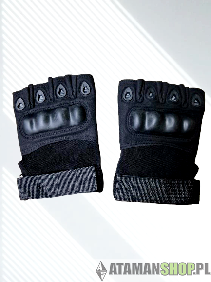 Rękawiczki militarne bez palców – czarne, z ochroną na kostki i regulacją na rzep