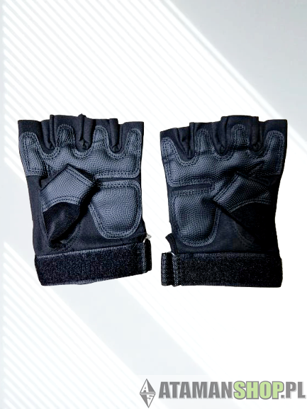 Czarne rękawiczki militarne bez palców z ochronnym tworzywem na kostki i regulacją na rzep to praktyczny, wytrzymały i komfortowy element wyposażenia każdego, kto stawia na funkcjonalność oraz bezpieczeństwo. Idealne do airsoftu, taktyki, outdooru i różnego rodzaju aktywności terenowych.