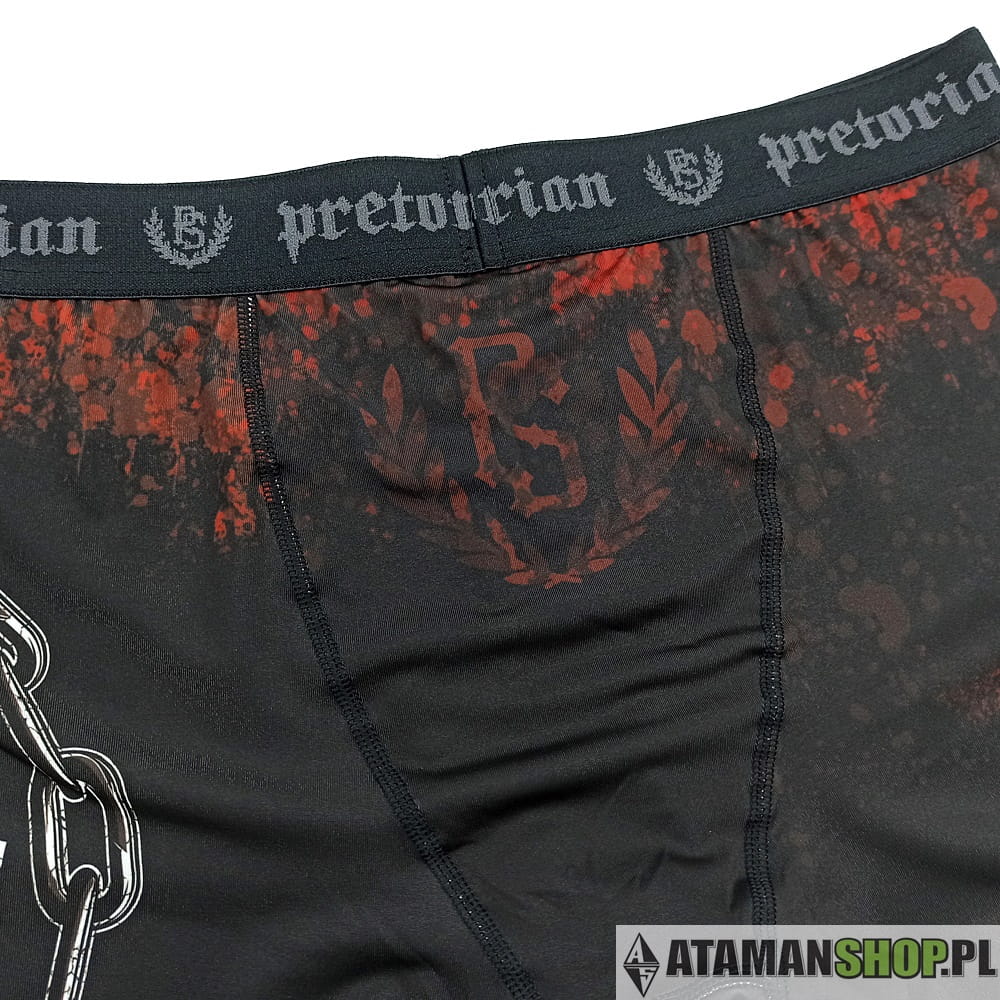 Dzięki zastosowaniu płaskich, ergonomicznie rozmieszczonych szwów i materiału rozciągającego się w każdą stronę, mamy pewność nieskrępowanych ruchów. Płaskie, wzmacniane szwy nie podrażniają skóry. Elastyczna gumka w pasie z wizerunkiem logo marki Pretorian zapobiega przesuwaniu się odzieży podczas treningu.