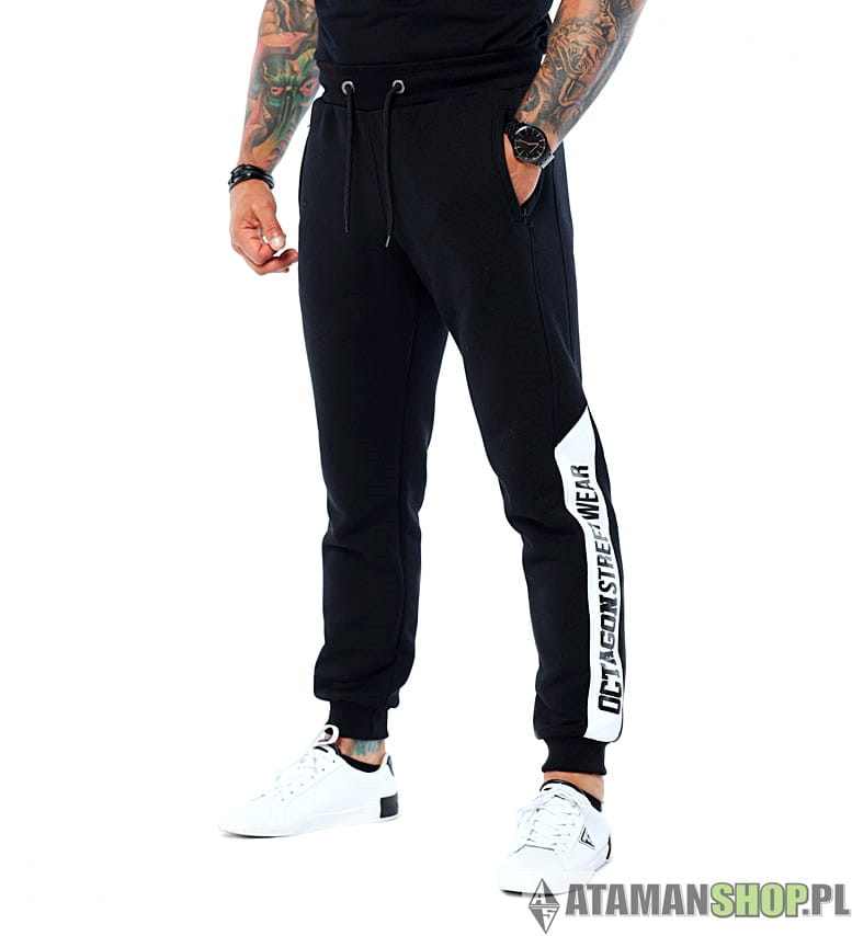 Spodnie wysokiej jakości z czarną metką, ściągacze nadruk