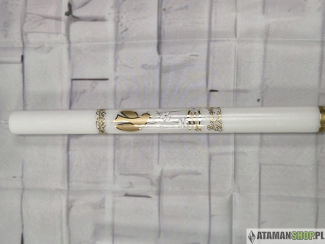Świeca chrzcielna z gołębiem – znak Ducha Świętego