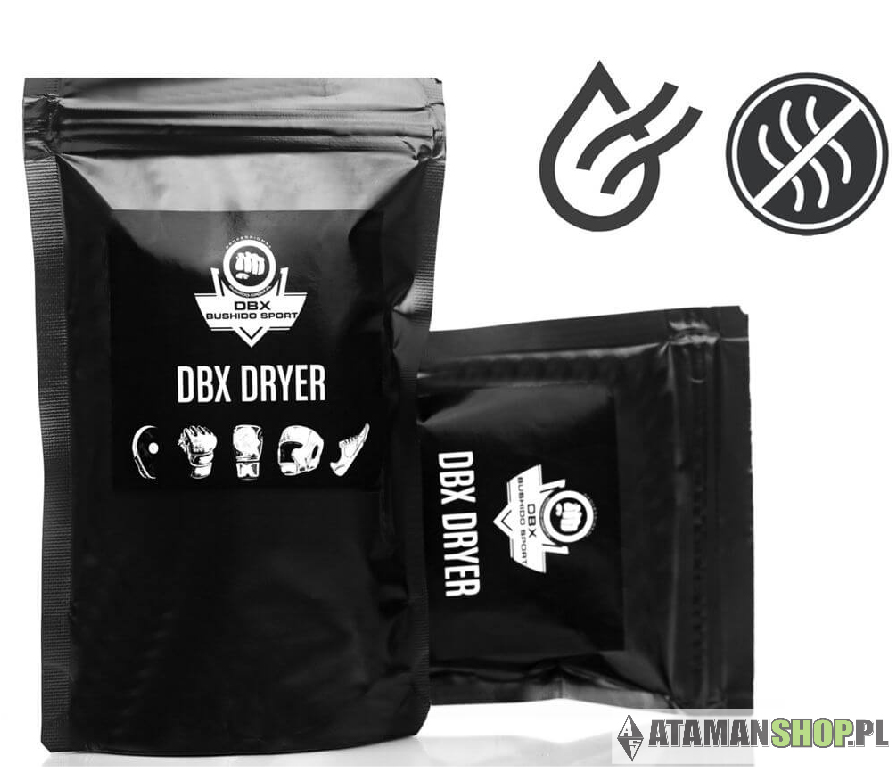 Elementem zestawu jest również DBX DRYER, czyli wkład osuszający do rękawic i sprzętu treningowego. Jego zadaniem jest pochłanianie wilgoci, co ogranicza powstawanie nieprzyjemnych zapachów oraz rozwój bakterii i grzybów.